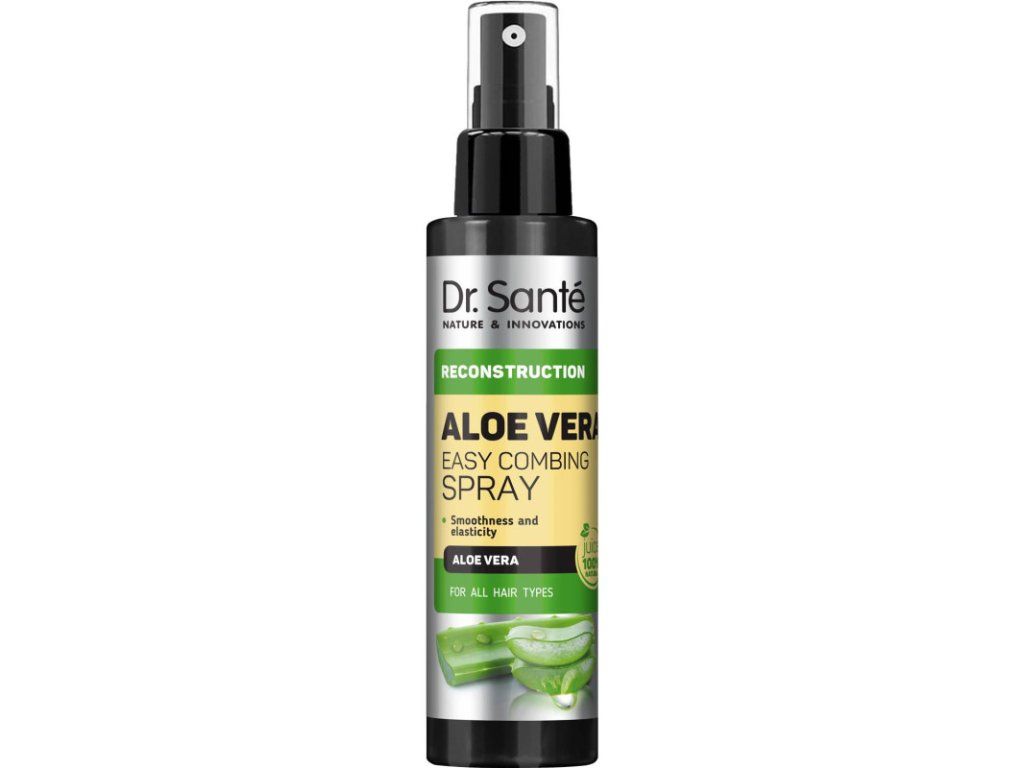 Dr. Santé Aloe Vera sprej na vlasy s výťažkami aloe vera - Ľahké rozčesávanie vlasov Hebkosť a pružnosť Pre všetky typy vlasov Stačí jeden jemný pohyb a sprej vaše vlasy okamžite zvlhčí a dodá im lesk. Pomáha uhladiť vlasy a odstrániť z nich statickú elektrinu. Zjednodušuje rozčesávanie aj styling. OBSAHUJE ČISTÚ ŠŤAVU Z ALOE VERA BOHATÚ NA BIOLOGICKY AKTÍVNE INGREDIENCIE (POLYSACHARIDY, VITAMÍNY, AMINOKYSELINY), KTORÉ ZVLHČUJÚ VLASY KERATÍN OBNOVUJE POŠKODENÉ VLASY OBSAHUJE ŽIHĽAVOVÝ EXTRAKT PRE LESKLÉ A HEBKÉ VLASYDodatočné parametre