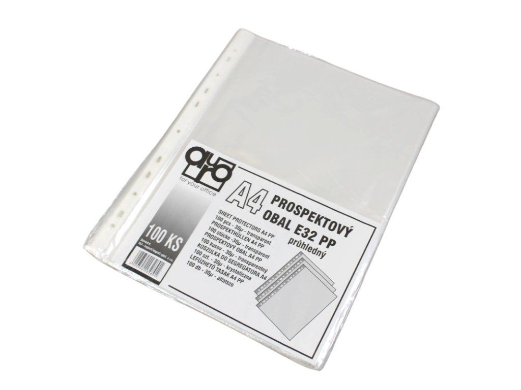 Euroobal AURO A4, transparentmý, lesklý, 30 µm, 100 ks Transparentmý euroobal z polypropylénu. Otvor zhora, eurodierovanie, povrch lesklý a hladký. Formát A4. Formát A4 Balený v sáčku. Hrúbka: 30 mic. Cena je za bal./100 ksBuďte prvý, kto napíše príspevok k tejto položke.