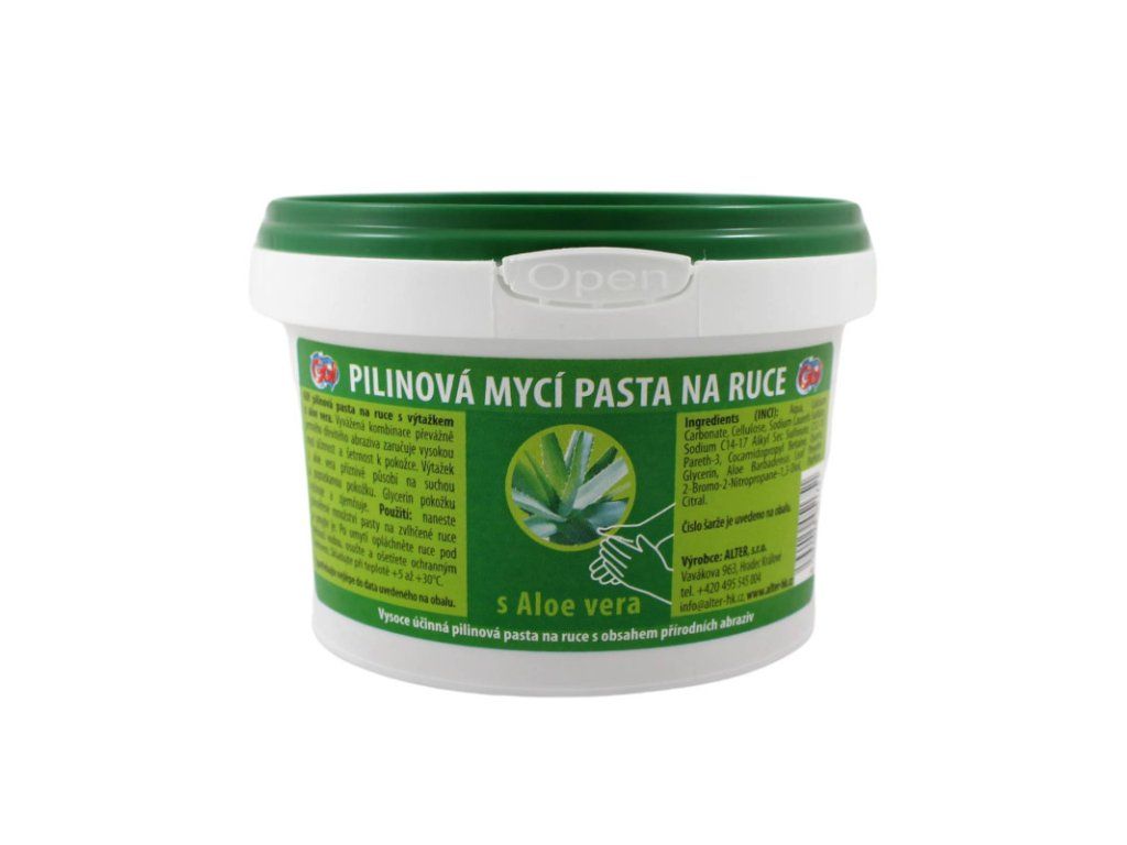 GO! pilinová umývacia pasta na ruky s ALOE VERA 500g GO! pilinová pasta na ruky s výťažkom z aloe vera. Vysoko účinná pilinová pasta na ruky s obsahom prírodných abrazív. Vyvážená kombináciám prevažne jemného drevitého abrazíva zaručuje vysokú umývacu účinnosť a šetrnosť k pokožke. Výťažok z aloe vera priaznivo pôsobí na suchú a popraskanú pokožku. Glycerín pokožku vyživuje a zjemňuje. Použitie: naneste primerane množstvo pasty na zvlhčené ruky a umyte ich. Po umytí opláchnite ruky pod tečúcou vodou, osušte a ošetrite ochranným krémom. Skladujte pri teplote +5 až + 30°CDiskusia